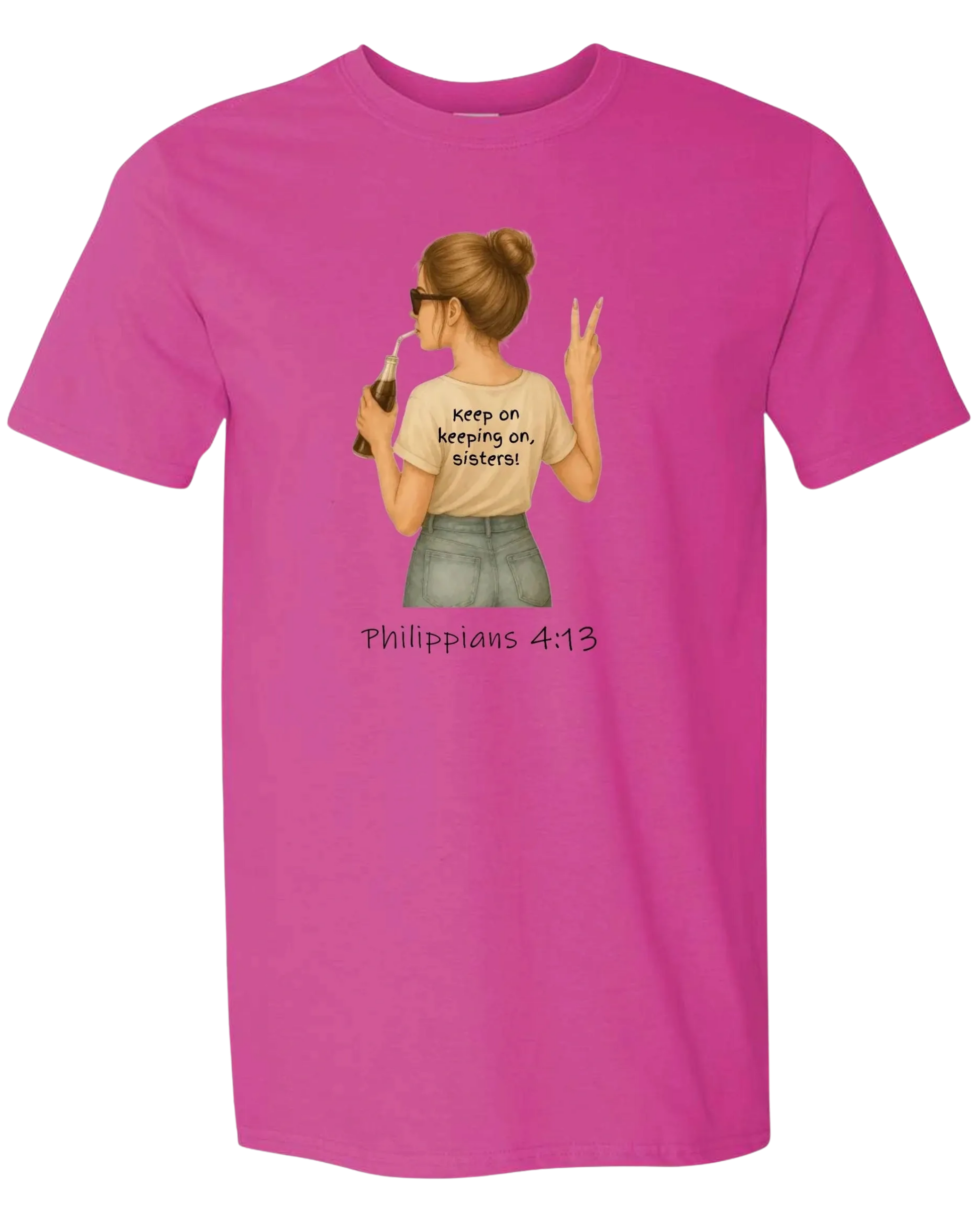 Our girl stating that we should "Keep On Keeping On, Sister" tee is offered in three wonderful colors. Indigo Blue (100% ring-spun cotton), Heather Heliconia (we'll just call it pink) (65/35 polyester/cotton) , and Heather Purple (65/35 polyester/cotton). You'll not only turns heads with this brilliant and sassy tee, you'll also uplift and encourage others. Keep On Keeping On, Sister. Gildan